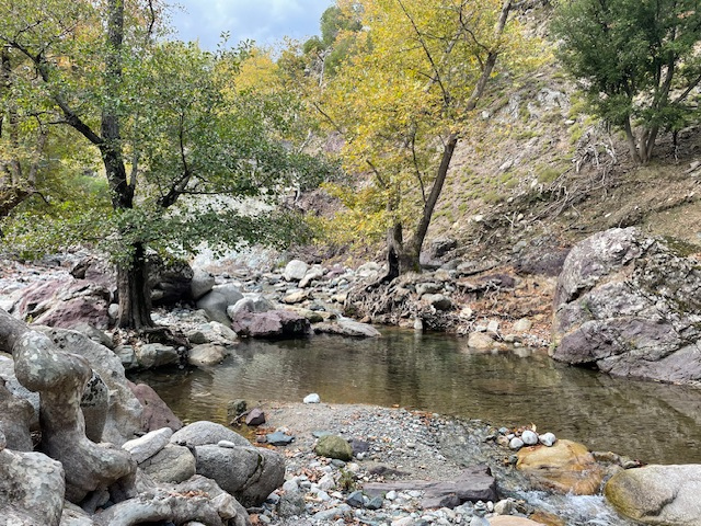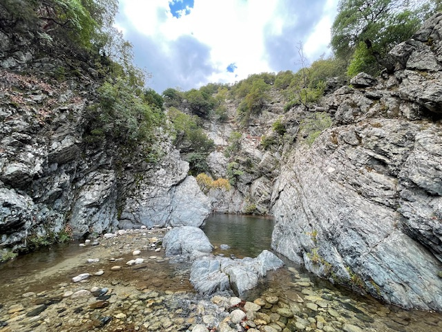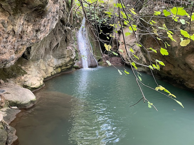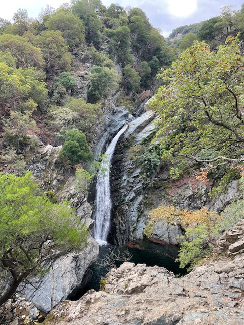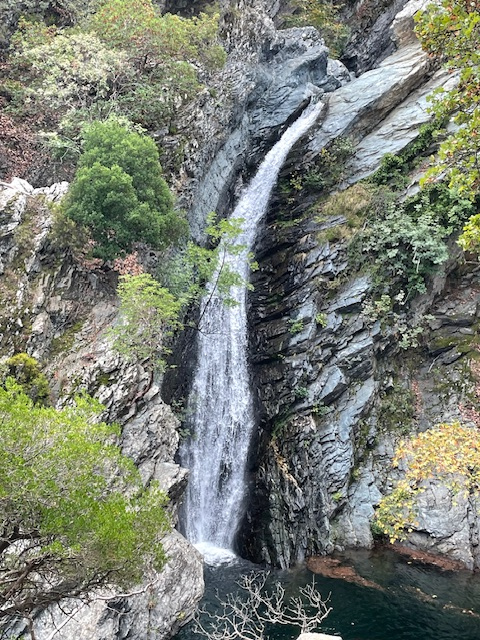 Zum Abschied machte Gisela noch eine schöne Wanderung zu den Fonias-Wasserfällen, immer am Bachbett entlang und zum Schluss mit etwas Kletterei am fixen Seil.