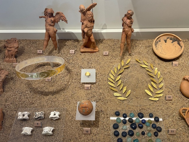 Besonders beeindruckt hat uns das Heiligtum der Großen Götter. Im dritten Jahrhundert trafen sich hier die großen Götter und vollzogen mystische Riten, um zu bewirken, dass die Welt besser wird und es göttlichen Schutz auf See gibt. Es braucht Zeit, um die große Anlage zu erwandern und um zu der Stelle zu kommen, wo die Nike von Samothraki gefunden wurde. In dem sehr schön gestalteten Museum konnten wir viele gut erhaltene Fundstücke bestaunen.