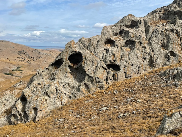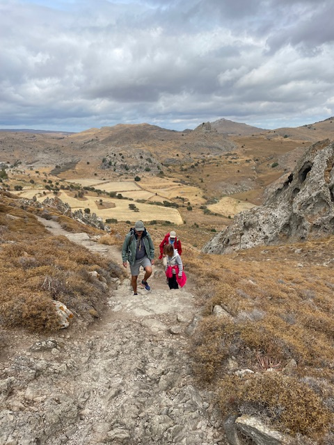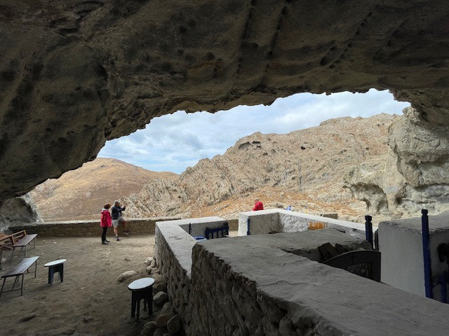 Besonders beeindruckt hat uns die Tageswanderung durch die karge und felsige Landschaft zur kleinen Höhlenkirche Kakaviotissa: Sie liegt ganz weit oben in den Bergen.