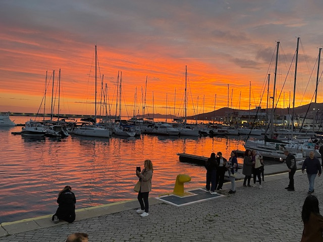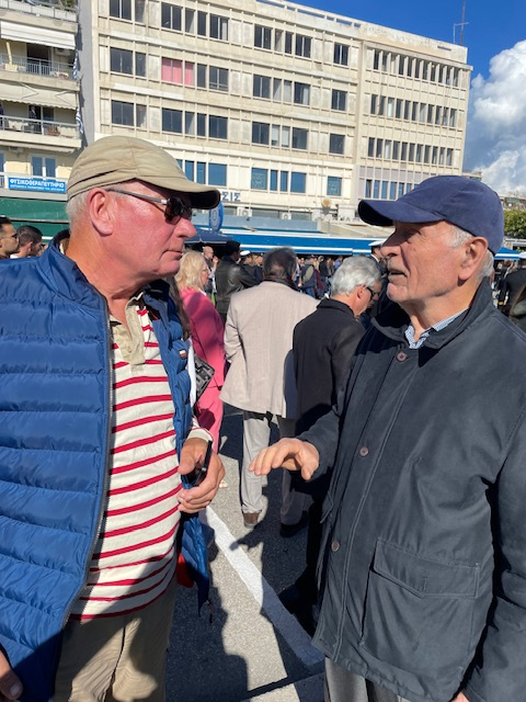 Und dann der Oxi-Day, griechischer Nationalfeiertag am 28. Oktober. Wir haben ihn ja schon mehrfach an anderen Orten erlebt, immer ein großes Spektakel, obwohl er ja einen ernsten, für die Griechen sehr leidvollen Anlass hat https://du-bist-grieche.de/28-oktober-der-tag-des-nein-in-griechenland-ochi-tag/19366781: Ansprache, Musik und eine Parade. Dieses Mal waren wir in Kavala dabei, haben uns über die vielen Kinder und Jugendlichen bei der Parade gefreut und über die Frauen und Männer in ganz unterschiedlichen Trachten. So viele junge Menschen und solch eine Vielfalt wird hier sichtbar. Wo gibt es das bei uns zu Hause zu sehen? Schön auch, die Menschen zu beobachten, die der Parade zuschauen. Die sich zu diesem großen Happening einfinden, verabredet haben und dann dank Handy meist auch finden. Eltern und Großeltern, die stolz darauf sind, dass ihre Kinder und Enkel bei der Parade mitmachen. Manchmal kommt auch mit jemandem ins Gespräch. Und immer, wenn beim Passieren der Honoratioren der Stadt von einer Person die rechte Hand (oft mit weißem Handschuh) nach oben geht, werden wir an den Anlass dieses Tages im Jahr 1940 erinnert. Wir sind so froh, dass wir, seit wir in Griechenland unterwegs sind, als Deutsche immer und überall willkommen waren.