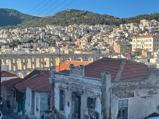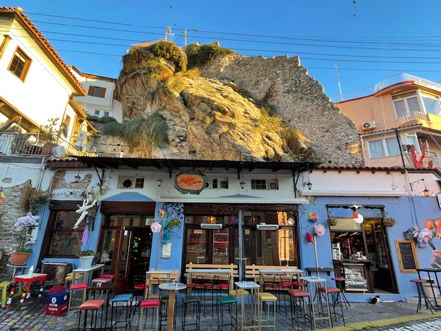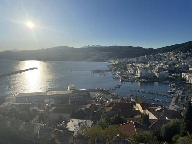 Die Festung thront direkt über dem Hafen. Vom Cockpit aus haben wir sie bei jedem Tages- und Nachtlicht bewundert. Natürlich sind wir auch hochgestiegen. Vom Turm aus ein grandioser Rundumblick, über die Stadt, den Hafen, nach Thassos und bis zum Berg Athos. Ein besonderer Eyecatcher ist auch das zweistöckige Viadukt, durch das in früheren Zeiten das Wasser in die Stadt transportiert wurde.