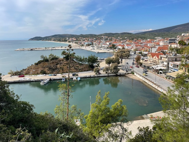 Mit Bus und zu Fuß waren wir unterwegs. Wir besuchten den Ort Therma mit seinen Schwefelquellen, schauten uns den kleinen Hafen an und beschlossen, mit unserem Boot nicht dorthin zu gehen. Die Hafeneinfahrt ist extrem schmal und der Hafen recht flach.