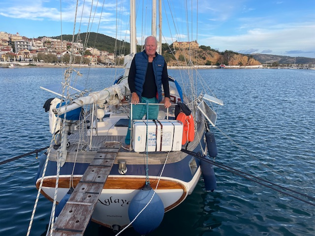 Stavros Manitsas ist der Inhaber des Boatyards. Man muss sich ein bisschen Zeit nehmen, um ihn kennenzulernen. Unser erster Besuch in seinem Büro dauerte eine Stunde - nicht nur, weil wir mit ihm sehr gründlich alles, was unser Boot betrifft, besprochen haben. Da haben wir den Eindruck gewonnen, dass Aglaya hier in guten, erfahrenen Händen ist. Stavros hat uns auch viel von der bewegten Geschichte seiner Familie erzählt. Ursprünglich (vor mehr als 100 Jahren) lebte sie auf Kreta. Dort hat die Familie sich nicht mehr geschützt gefühlt und ist näher an die osmanische Hauptstadt Istanbul auf eine kleine Insel im Schwarzen Meer gezogen. 1922 wurden die Griechen nach Gründung des türkischen Staates vertrieben. So siedelte sich seine Familie in Nea Peramos in der Nähe von Kavala an. Viele Griechen, die damals aus der Türkei vertrieben wurden, gründeten neue Orte, die alle mit dem Begriff „Nea“ anfangen, so auch Nea Peramos.
