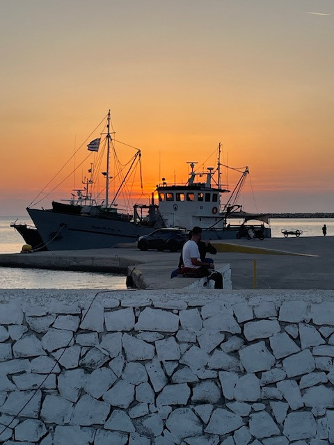 Auf den größeren Booten sieht man schon mal Ägypter auf ihrem Gebetsteppich, erst nach dem Gebet wird hinausgefahren. Wir haben ein Abschiedsfest erlebt, viele Ägypter mit Rollkoffer oder Rucksack gingen zum Bus, um die Heimreise anzutreten, im Frühjahr kommen sie dann wieder, der Verdienst hier in Griechenland reicht wohl aus, um die Familie zu ernähren.