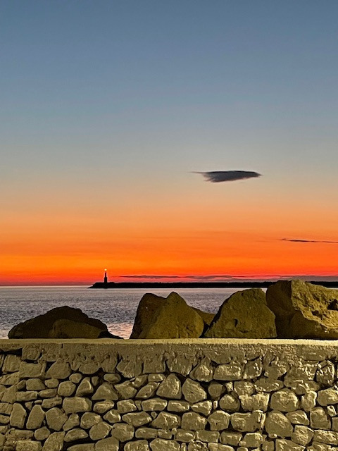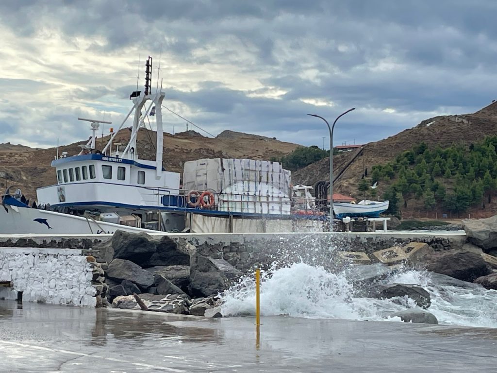 Dass es dann so heftig kommt und so lange dauert, hätten wir aber nicht gedacht. 24 Stunden starker Wind bis zu 40 Knoten, Gischt und Brecher, die über die Kaimauer kommen und sich über unser Boot ergießen, haben uns eine durchwachte Nacht und einen Tag Wache an Bord beschert. Unsere Leinen haben bisher gehalten. Aber die Brecher bringen jede Menge Posidonia auf unser Boot. Die Abflüsse an Deck sind immer wieder damit verstopft, sodass das überkommende Wasser nicht abfließen kann. Wir warten darauf, dass es ruhiger wird, wir an Land gehen können, um mal einen Kaffee zu trinken und fürs Abendessen einzukaufen. An die Säuberungsaktion an Deck möchten wir noch gar nicht denken.