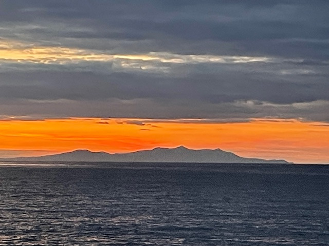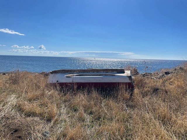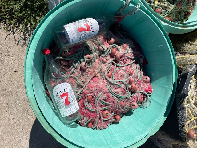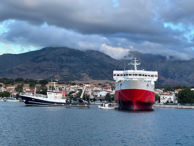 Nachdem uns die Insel zuerst mit Starkwind und Brechern, die sich mit Sand und Posidonia über unser Boot ergossen, empfangen hat, konnten wir an den folgenden Tagen viel Interessantes und Beeindruckendes auf der Insel entdecken. So haben wir zum Beispiel das vorsichtige Manövrieren der großen Fähre, die jeden Tag von Alexandroupoli kommt, beobachtet. Kaum Schwell für unser Boot. Und der „Ankermanager“ vorne am Bug hat uns, wenn der Bug fast über unser Boot reichte, jedes Mal zugewinkt. Einmal allerdings haben sich die beiden Buganker der Fähre miteinander verheddert. Erst mit Hilfe eines großen Fischerbootes konnte das Problem nach einer Stunde behoben werden.