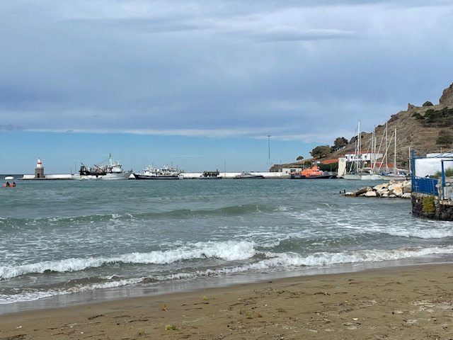 Segler sieht man hier kaum. Es gibt viele Fischerdörfer mit kleinen Häfen, die in den Seglerforen meist als zu klein, zu voll oder zu flach beschrieben werden. Das wollten wir wissen. In drei kleinen Dörfern haben wir für jeweils ein paar Tage angelegt: Nea Moudania, Nea Kallikratea und Nea Skioni, das „Nea“ steht für Neugründungen von Griechen, die im Rahmen der türkischen Staatsgründung 1922 aus Kleinasien vertrieben wurden. Überall recht große Fangflotten, teils aus einzelnen Booten bestehend, teils größere mit 8 -10 Mann Besatzung, der Schiffsführer Grieche, die Besatzung meist Ägypter. Die Dörfer sind richtig gemütlich, entspannt, haben auch alle Sandstrände gleich neben dem Hafen, es gibt schöne Kneipen und Bars, die Touristen hier sind entweder Griechen oder aus Nordmakedonien, Serbien, Bulgarien, Rumänien.