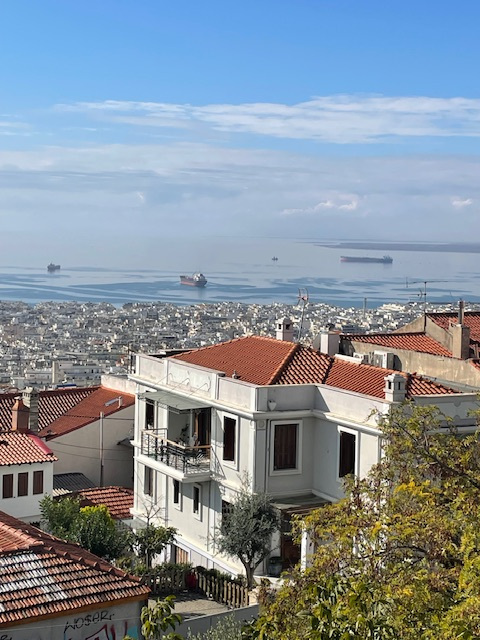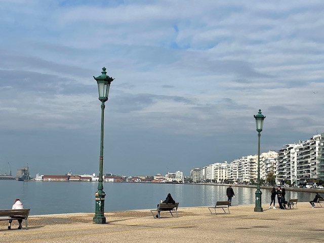Nachdem Aglaya nun aufgepallt im Boatyard steht, genehmigen wir uns noch einen Nachtisch an Land. Thessaloniki, die Hauptstadt von Makedonien, wo wir zuletzt so viel mit dem Boot unterwegs waren, ist mit rund drei Millionen Einwohnern die zweitgrößte Stadt Griechenlands. Sie war immer die Zweitgrößte - auch schon im byzantinischen Reich nach Konstantinopel. Diese durch eine bewegte Geschichte geprägte, quirlige und gleichzeitig entspannte Stadt wollten wir auf jeden Fall besuchen. Zwar hatten wir unser Boot im Sommer für zwei Monate in der Marina Aretsou etwas außerhalb der Stadt gelassen, um nach Hause zu fahren, aber da war es uns viel zu heiß für eine Stadterkundung. Nun also bei kühlem Novemberwetter, bestens platziert in einem winzigen Apartment ganz nah am Hafen.