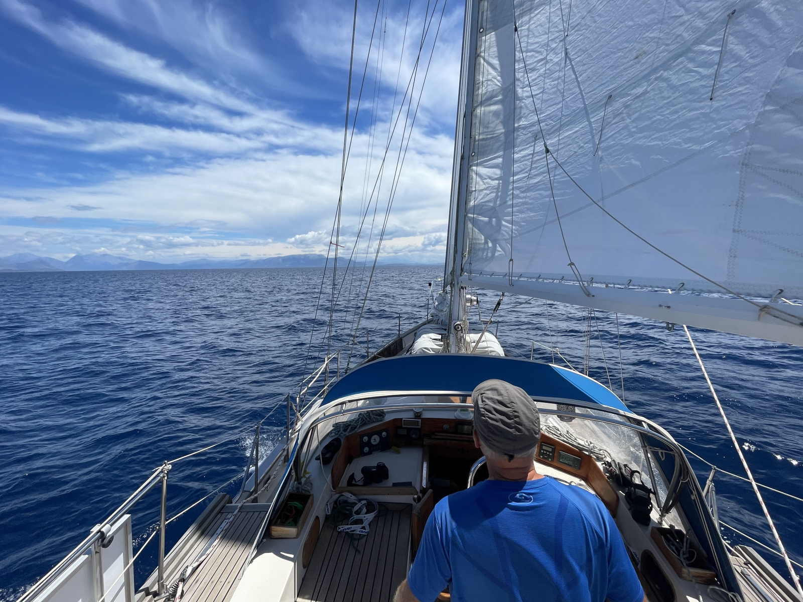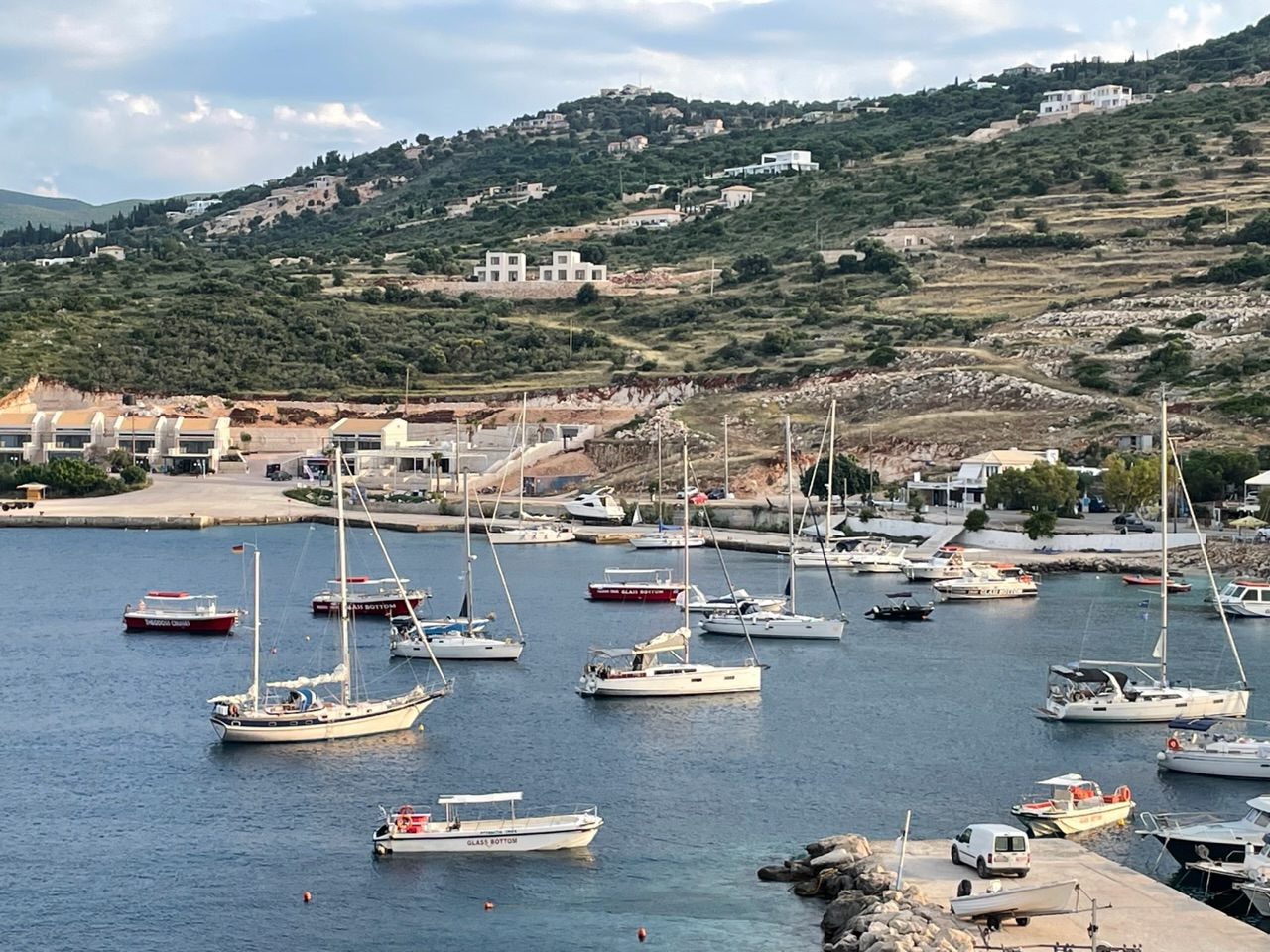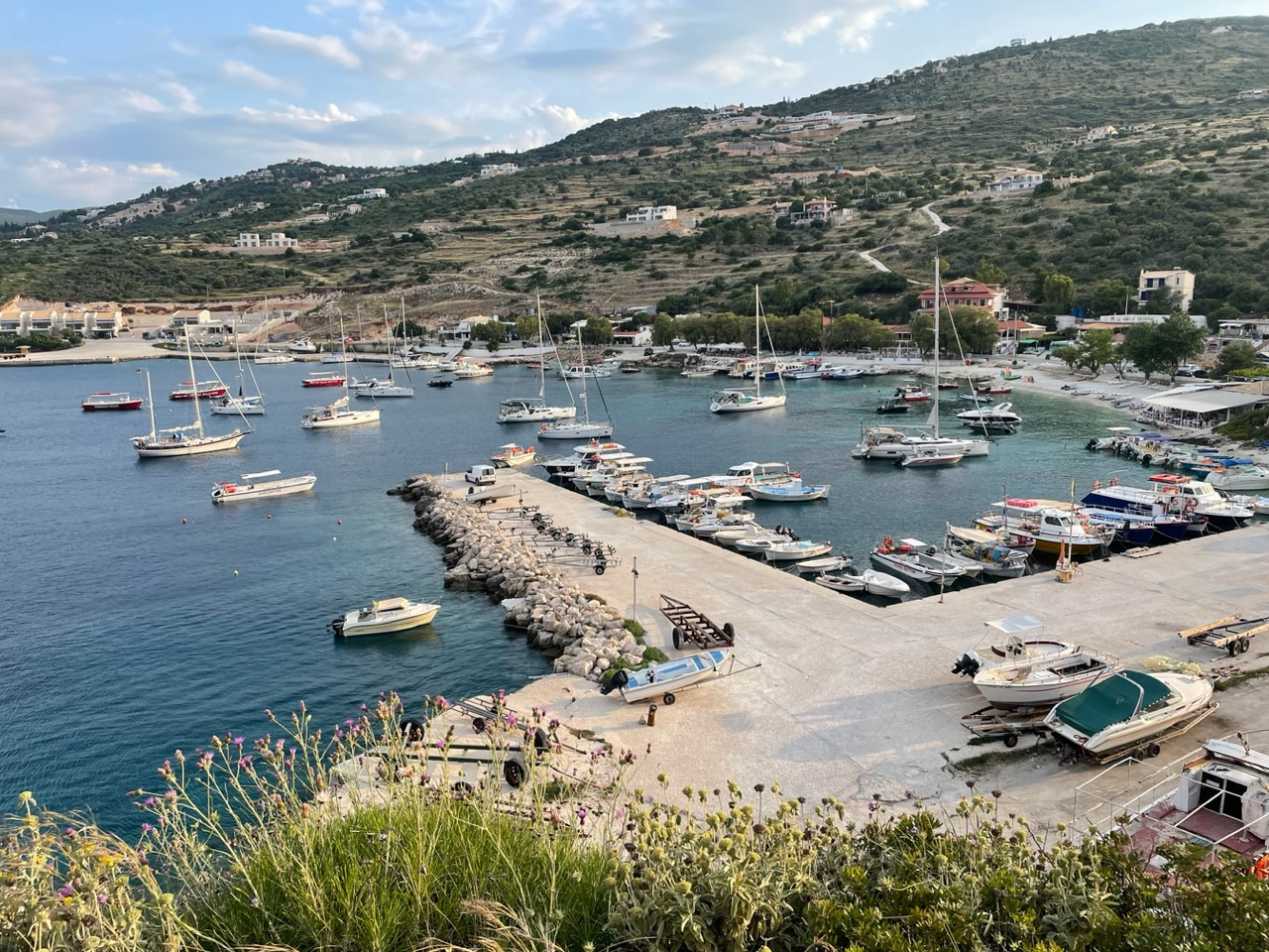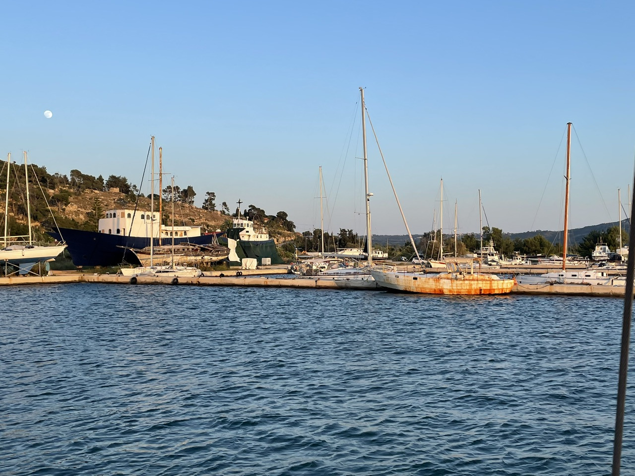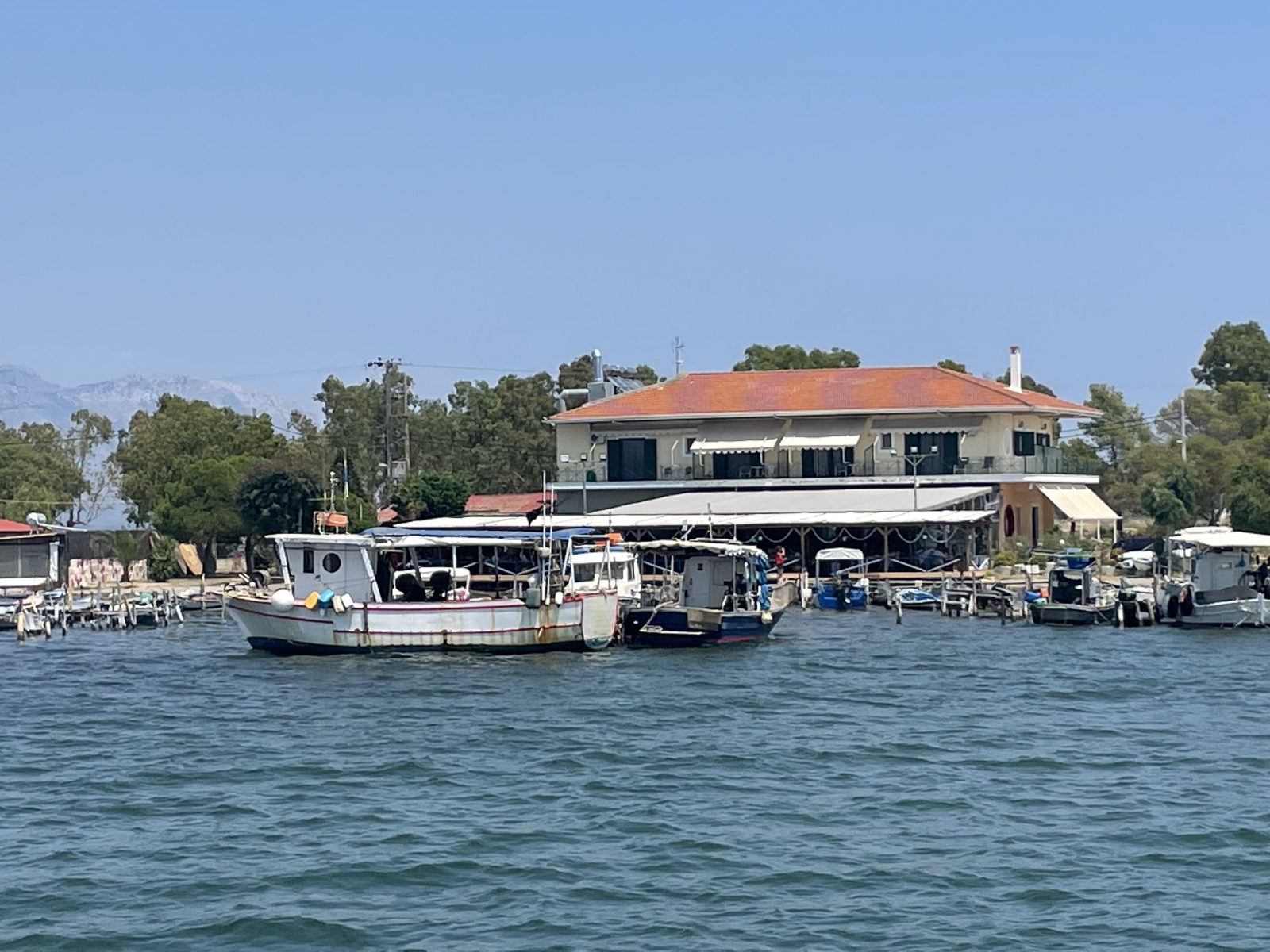 Wahrscheinlich hätte unser Boot den Weg von der idyllischen Petalas-Bucht, in der wir zwei Nächte geankert haben, auch ohne uns nach Messolonghi gefunden. Schließlich ist das viele Jahre Aglayas Heimathafen gewesen. Nach knapp zwei Jahren kehren wir nun dorthin zurück, erst um die bizarre Insel Oxia herum in den Golf von Patras, dann entlang am flachen Schwemmland und den Lagunen und schließlich in den Kanal von Messolonghi. Auch für uns ist es ein besonderes Gefühl, wieder hier einzulaufen. Wer ist noch da von denen, die wir hier kennen? Und wie geht es den anderen Seglern aus unserem Bekanntenkreis? Was haben sie erlebt? Und natürlich: Ist es im Sunset, der Marina-Bar, immer noch so nett wie vor zwei Jahren?
