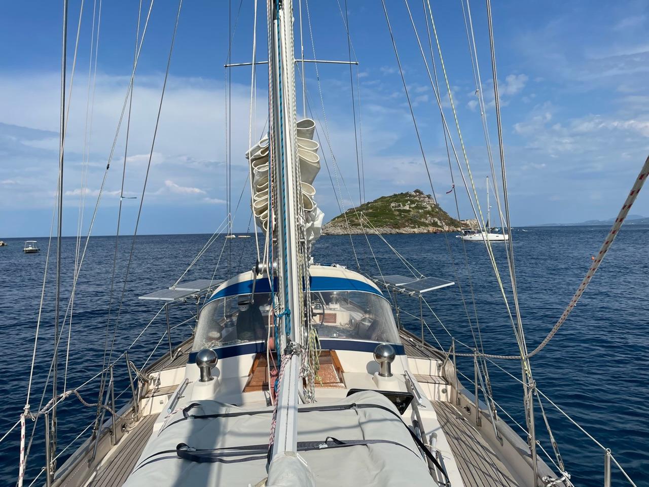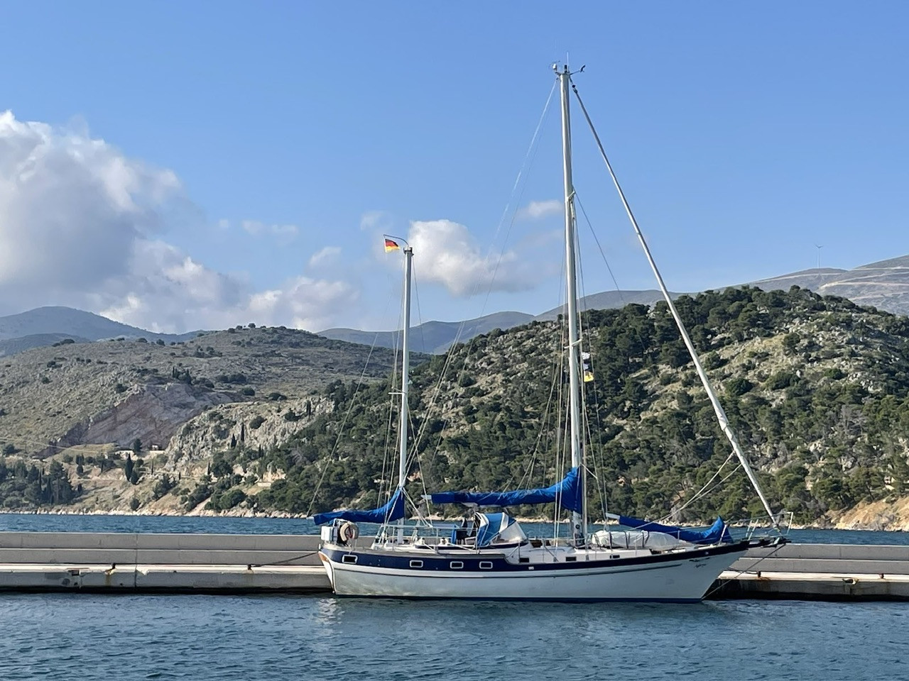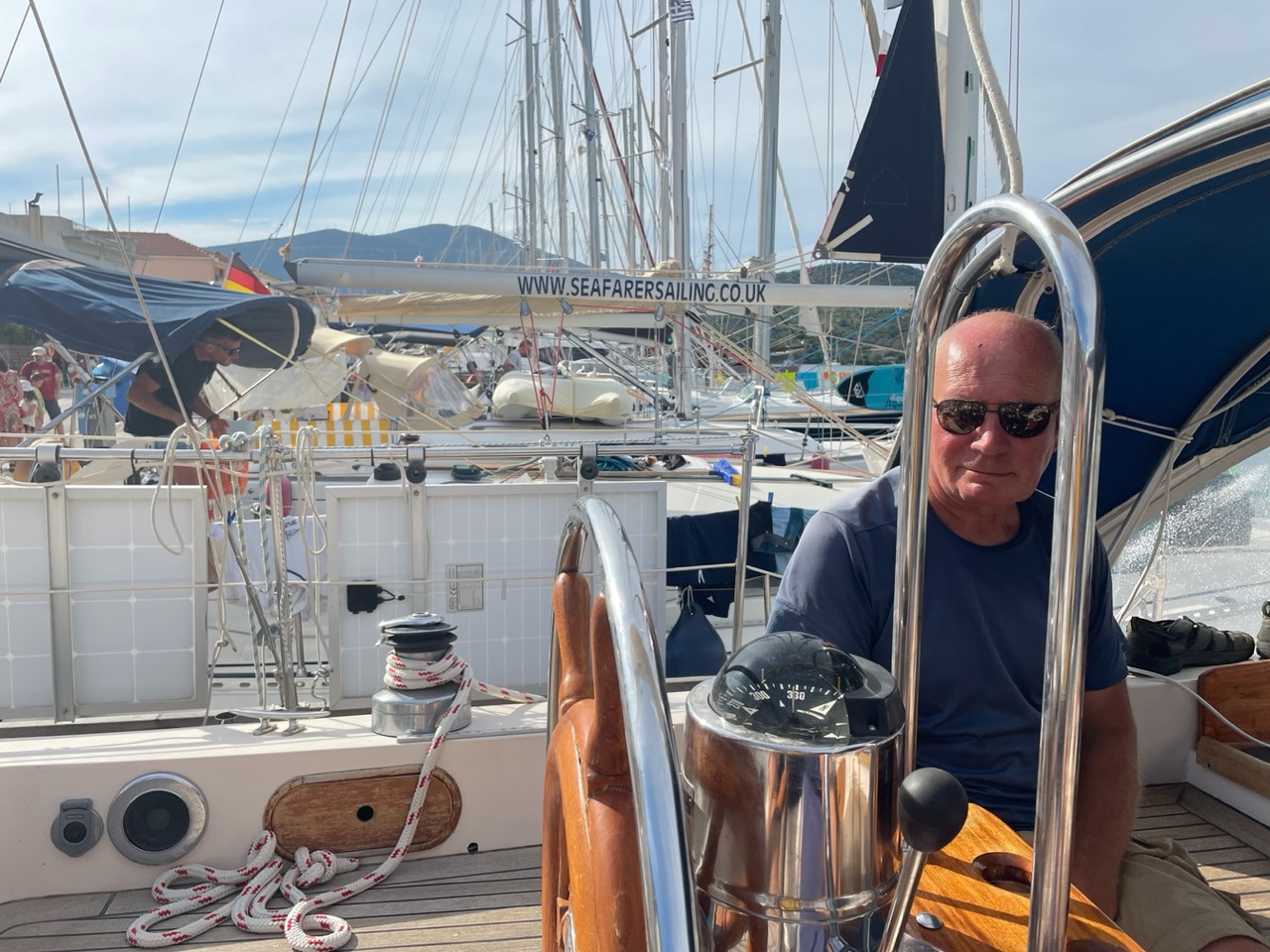 Wir werden herzlich und fröhlich empfangen. Unsere Freunde Angela und Walter sind da, als wir anlegen - übrigens auf genau dem Platz, auf dem wir vor zwei Jahren lagen. Auch die beiden Murings gehen immer noch komisch schräg ins Wasser. Da hat sich wohl nichts getan und wir müssen versuchen, unser Boot so gut wie möglich festzumachen. Schließlich wollen wir es für knapp zwei Monate hier alleine lassen.