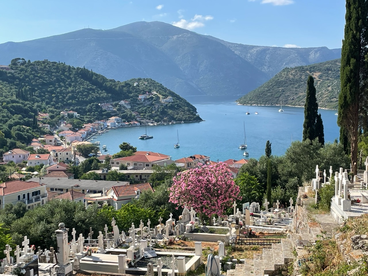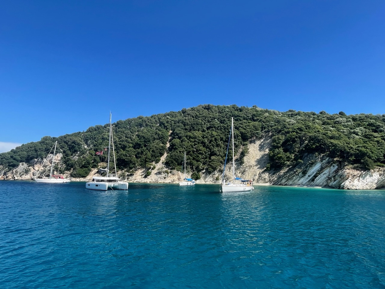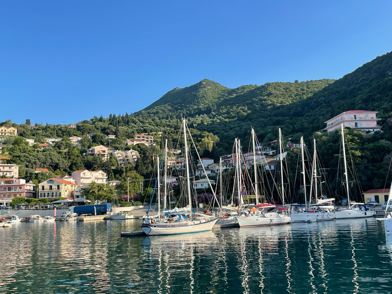 Wir werden herzlich und fröhlich empfangen. Unsere Freunde Angela und Walter sind da, als wir anlegen - übrigens auf genau dem Platz, auf dem wir vor zwei Jahren lagen. Auch die beiden Murings gehen immer noch komisch schräg ins Wasser. Da hat sich wohl nichts getan und wir müssen versuchen, unser Boot so gut wie möglich festzumachen. Schließlich wollen wir es für knapp zwei Monate hier alleine lassen.
