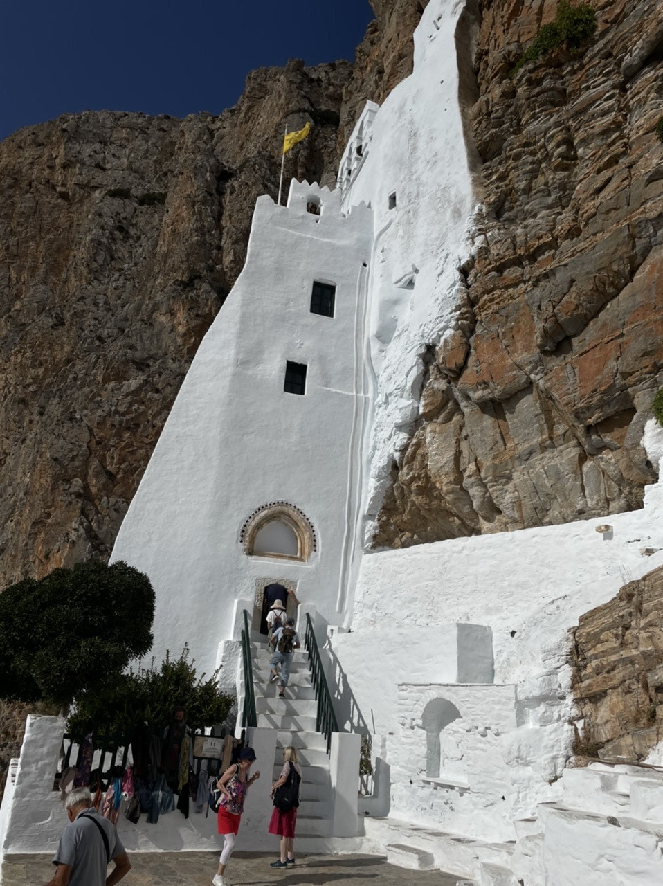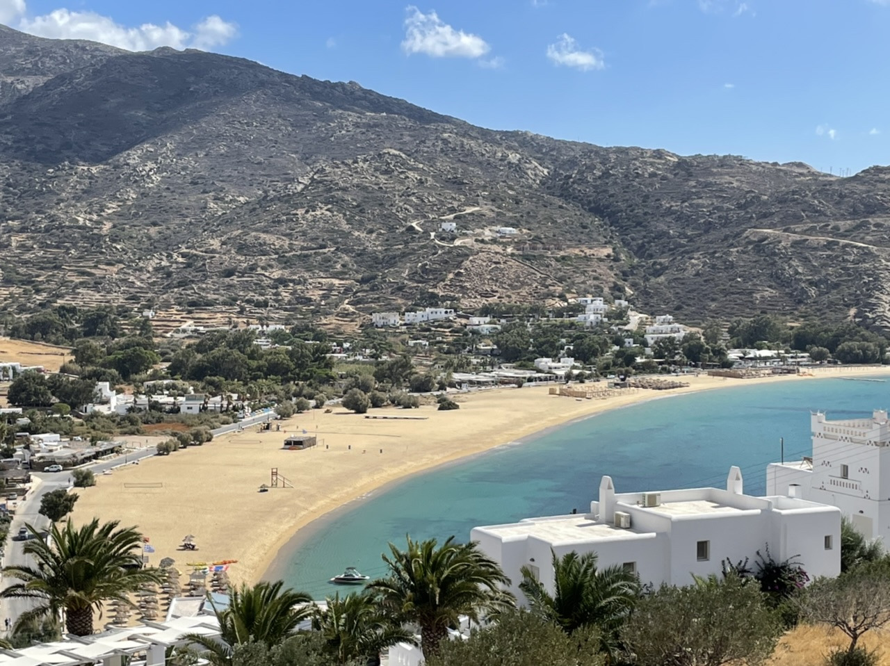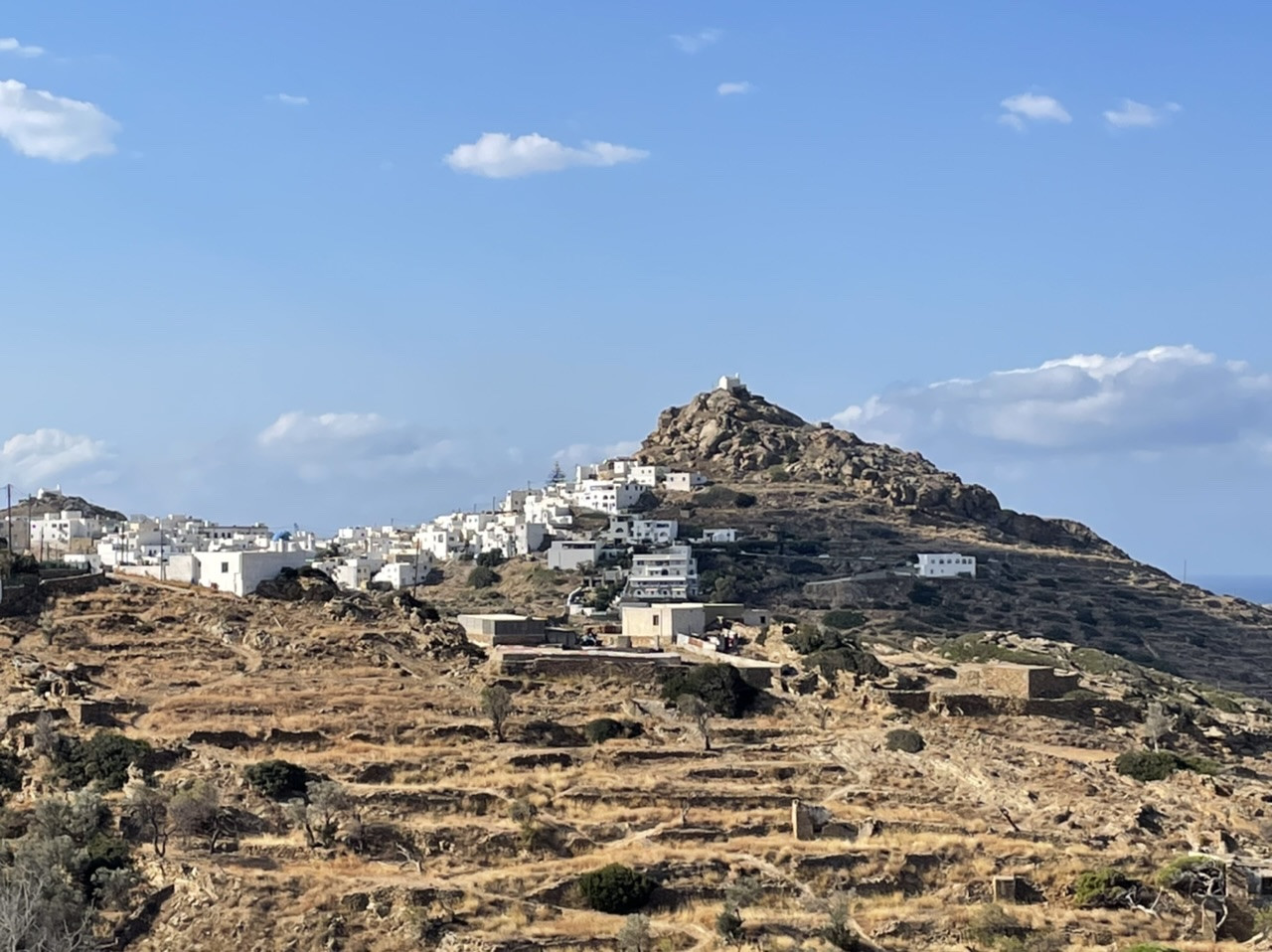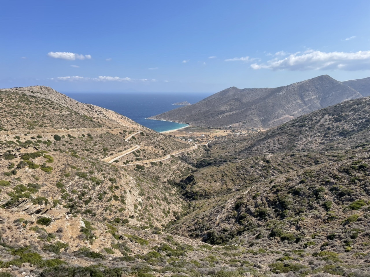 Auf Milos wollten wir uns ja Zeit lassen, um diese interessante Insel zu erkunden. Wir blieben etwas länger als geplant, da uns der tagelange Meltemi festhielt. Sehr komfortabel war es im Hafen von Adamas am Schwimmsteg nicht. Wir lagen zwar sicher bei dem starken bis zu 40 Knoten starken Nordwind (bei Südwind muss man dort sofort weg), aber unser Boot schaukelte sehr stark, der Wind stand uns direkt ins Cockpit und wir hatten je nach Böe Schwierikeiten, über unsere Passarelle von Bord und an Bord zu kommen. Aber wir sind ja klettererfahren. Die Fähren fuhren nicht. Und wir konnten beobachten, wie sich manche Boote an einen vermeintlich besseren Platz verlegten. Einer legte sich mit dem Bug zur Pier mit 7 Meter Abstand, Heckanker und sechs Leinen zur Pier. Sah aus wie ein Spinnennetz. Dafür nahm er drei Liegeplätze in Anspruch.