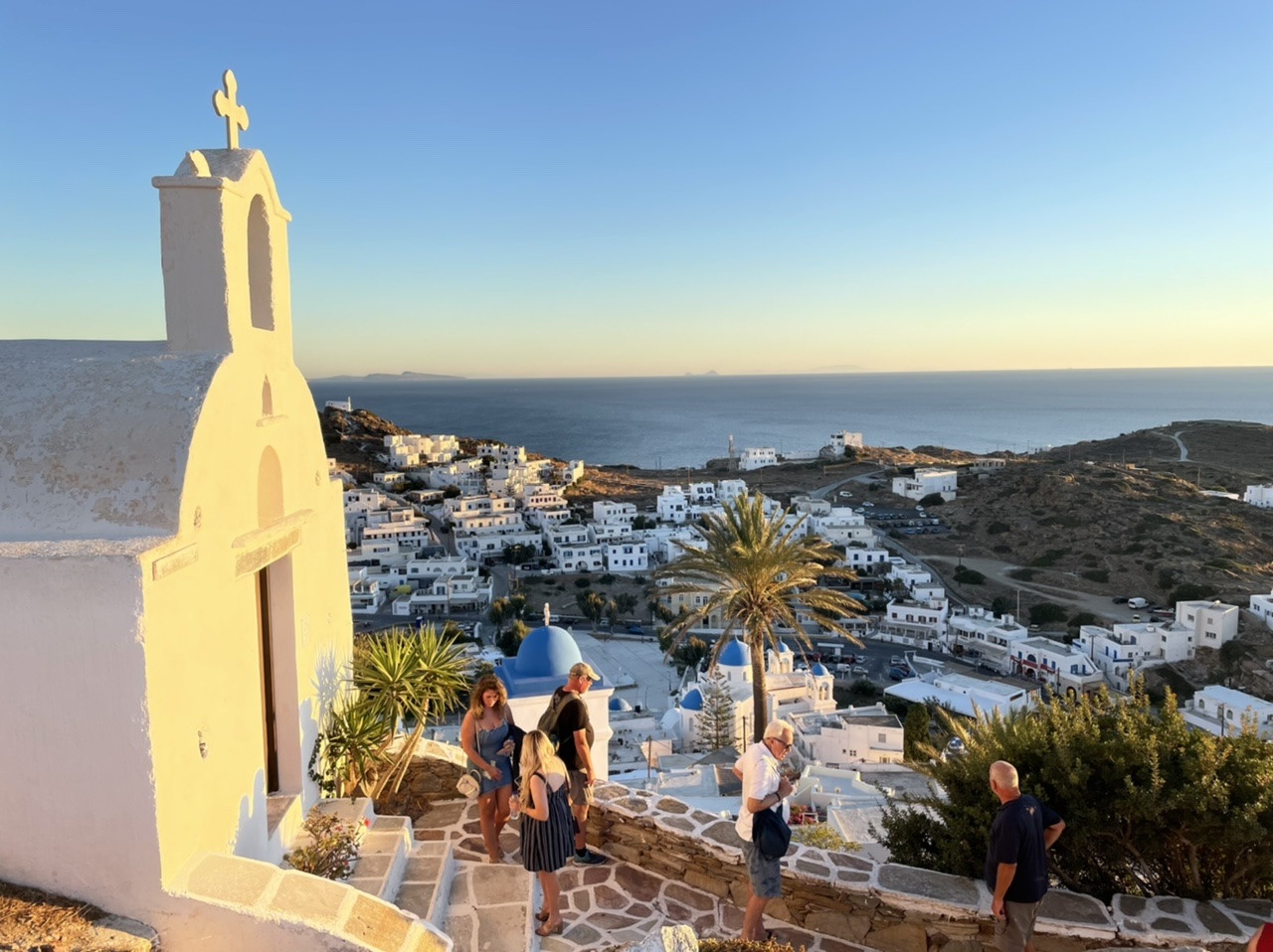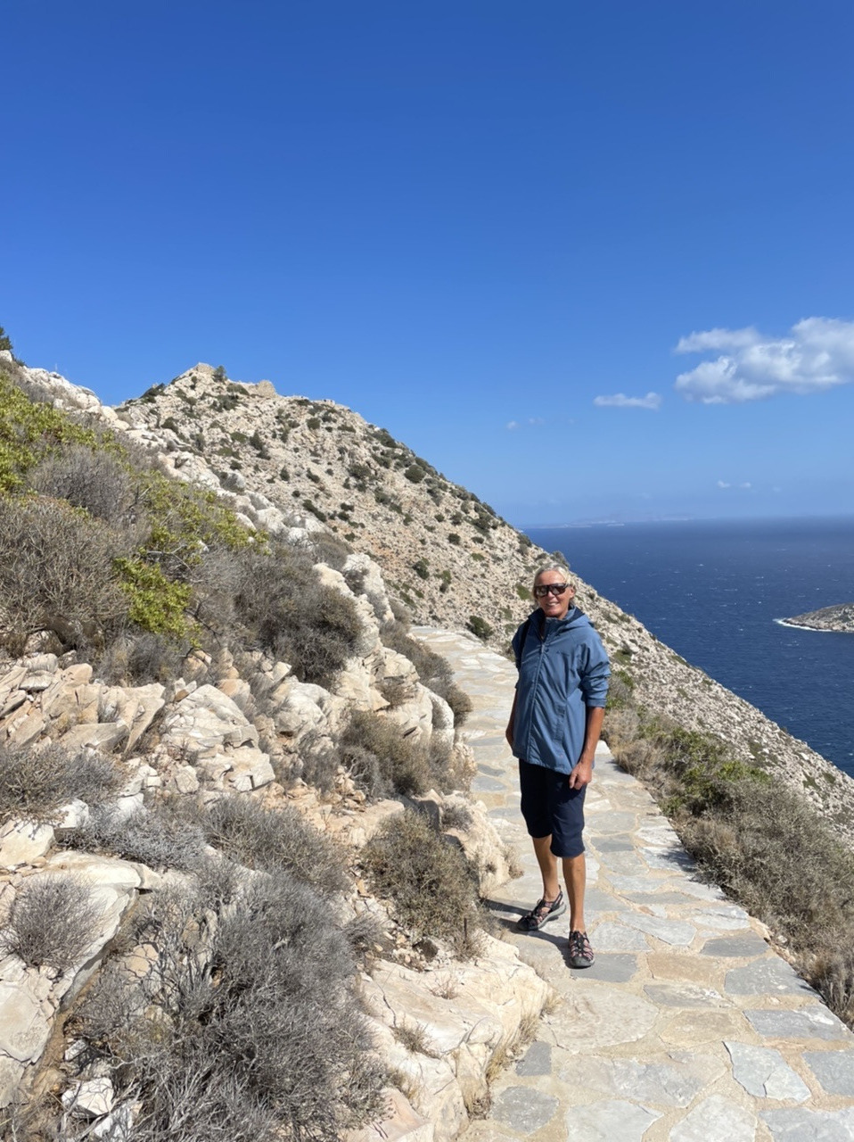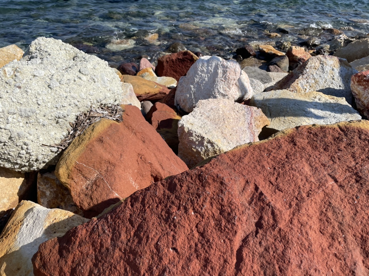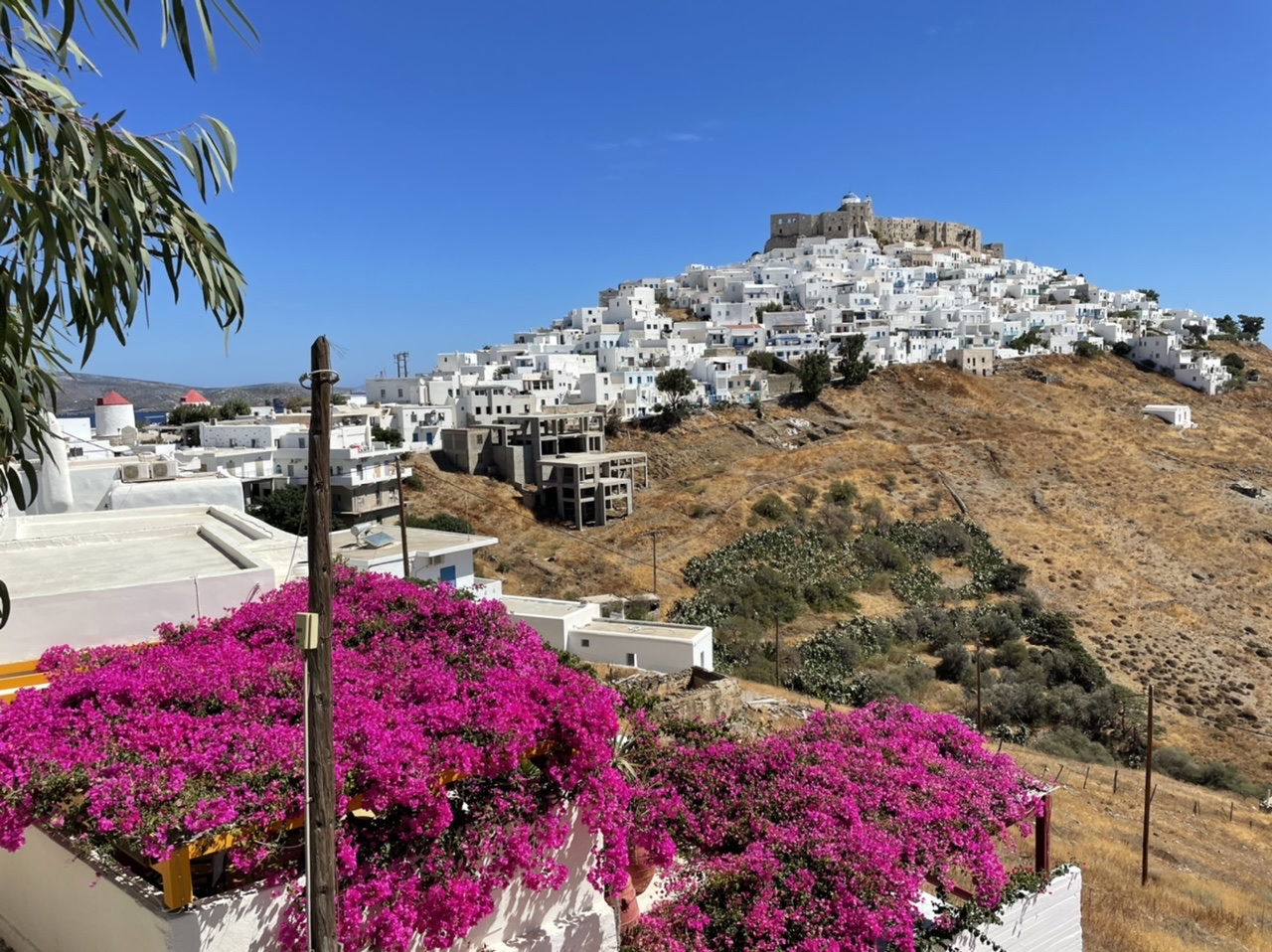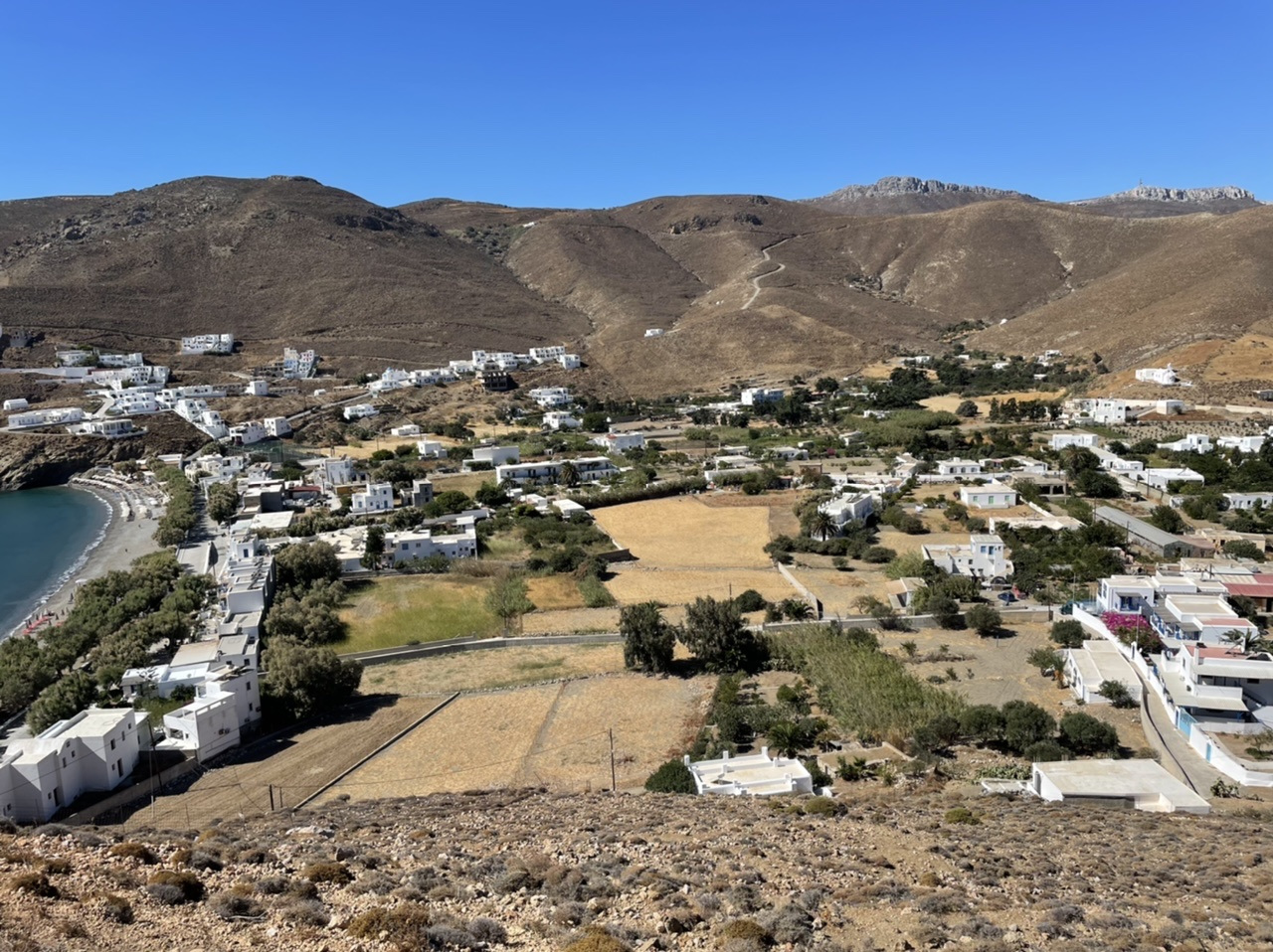 Auf Milos wollten wir uns ja Zeit lassen, um diese interessante Insel zu erkunden. Wir blieben etwas länger als geplant, da uns der tagelange Meltemi festhielt. Sehr komfortabel war es im Hafen von Adamas am Schwimmsteg nicht. Wir lagen zwar sicher bei dem starken bis zu 40 Knoten starken Nordwind (bei Südwind muss man dort sofort weg), aber unser Boot schaukelte sehr stark, der Wind stand uns direkt ins Cockpit und wir hatten je nach Böe Schwierikeiten, über unsere Passarelle von Bord und an Bord zu kommen. Aber wir sind ja klettererfahren. Die Fähren fuhren nicht. Und wir konnten beobachten, wie sich manche Boote an einen vermeintlich besseren Platz verlegten. Einer legte sich mit dem Bug zur Pier mit 7 Meter Abstand, Heckanker und sechs Leinen zur Pier. Sah aus wie ein Spinnennetz. Dafür nahm er drei Liegeplätze in Anspruch.