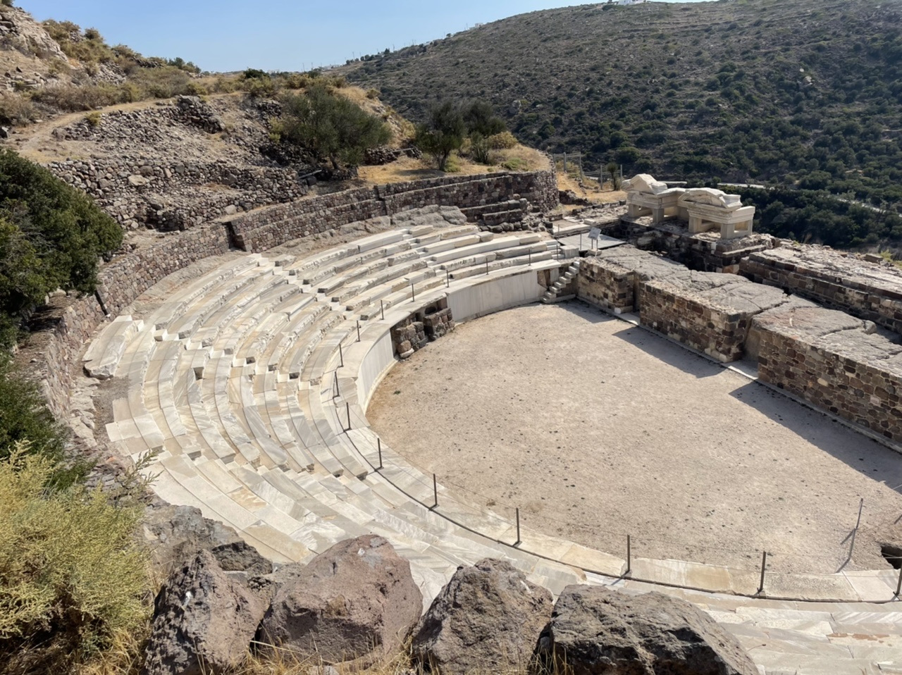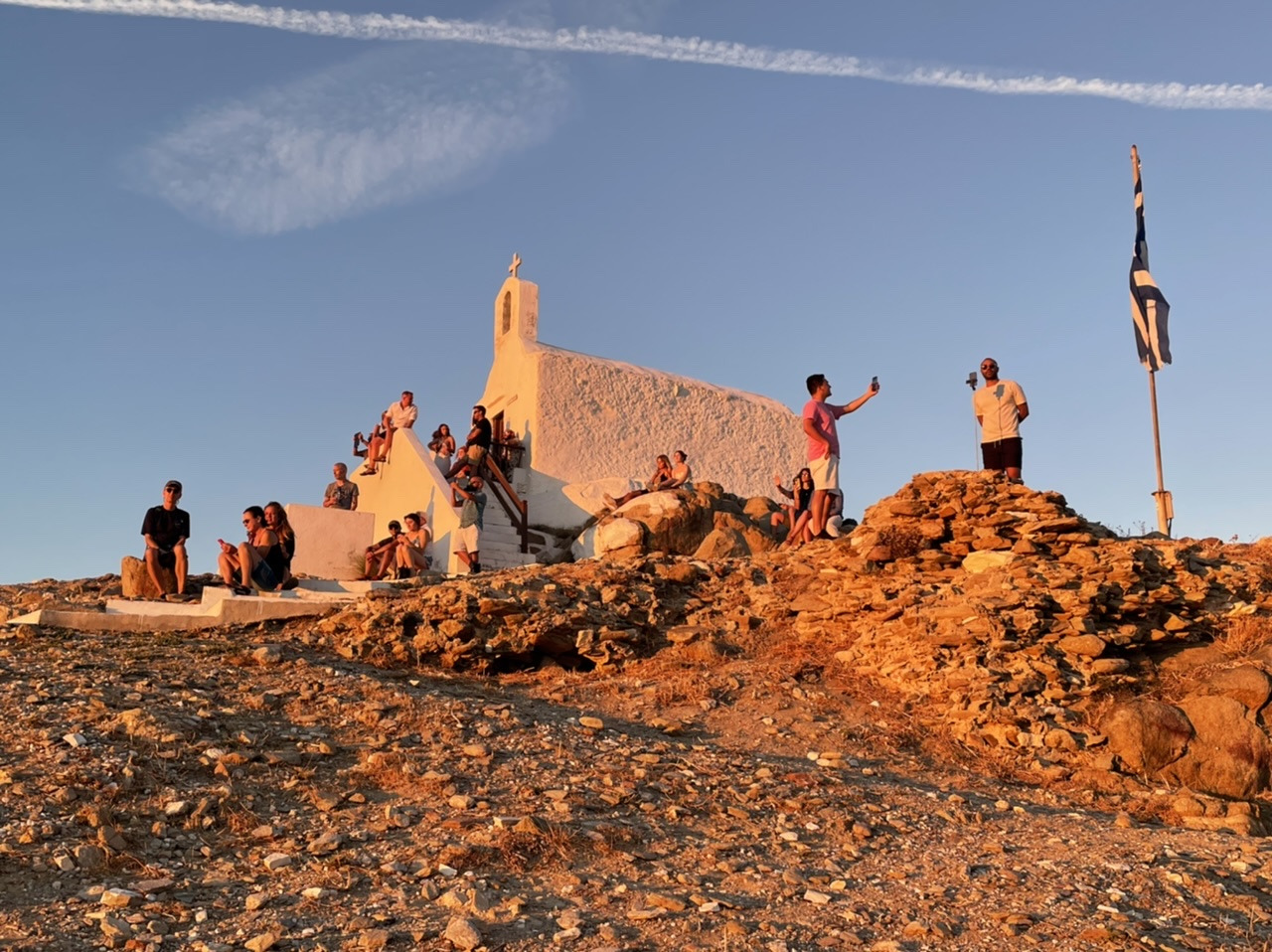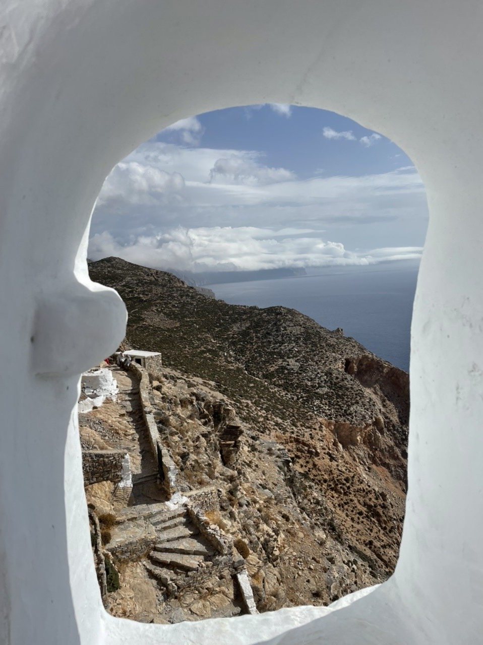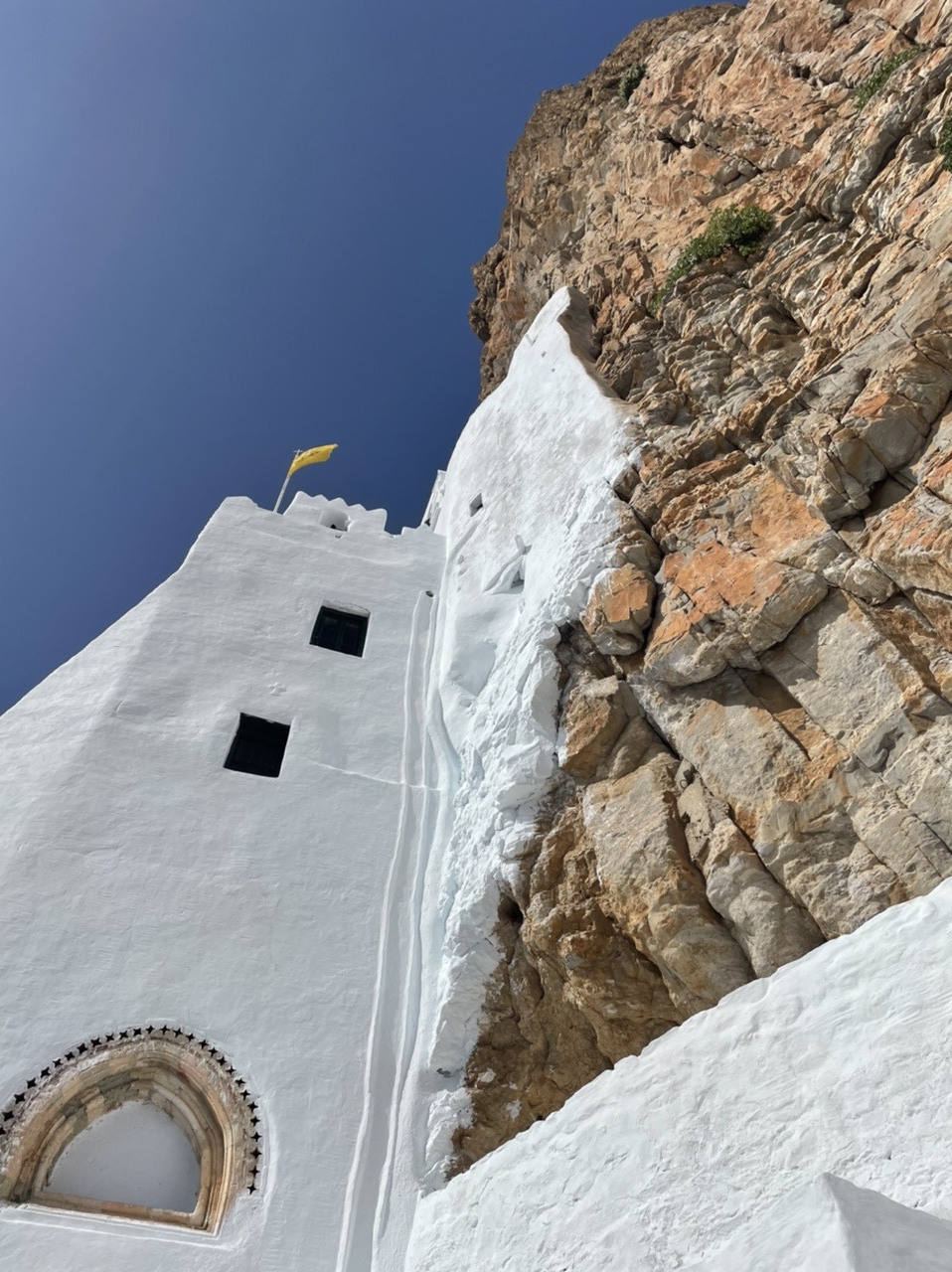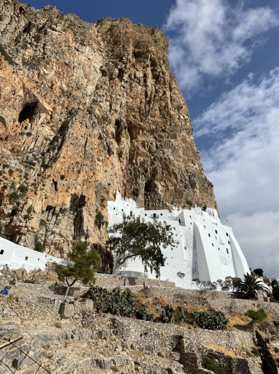 Auf Milos wollten wir uns ja Zeit lassen, um diese interessante Insel zu erkunden. Wir blieben etwas länger als geplant, da uns der tagelange Meltemi festhielt. Sehr komfortabel war es im Hafen von Adamas am Schwimmsteg nicht. Wir lagen zwar sicher bei dem starken bis zu 40 Knoten starken Nordwind (bei Südwind muss man dort sofort weg), aber unser Boot schaukelte sehr stark, der Wind stand uns direkt ins Cockpit und wir hatten je nach Böe Schwierikeiten, über unsere Passarelle von Bord und an Bord zu kommen. Aber wir sind ja klettererfahren. Die Fähren fuhren nicht. Und wir konnten beobachten, wie sich manche Boote an einen vermeintlich besseren Platz verlegten. Einer legte sich mit dem Bug zur Pier mit 7 Meter Abstand, Heckanker und sechs Leinen zur Pier. Sah aus wie ein Spinnennetz. Dafür nahm er drei Liegeplätze in Anspruch.