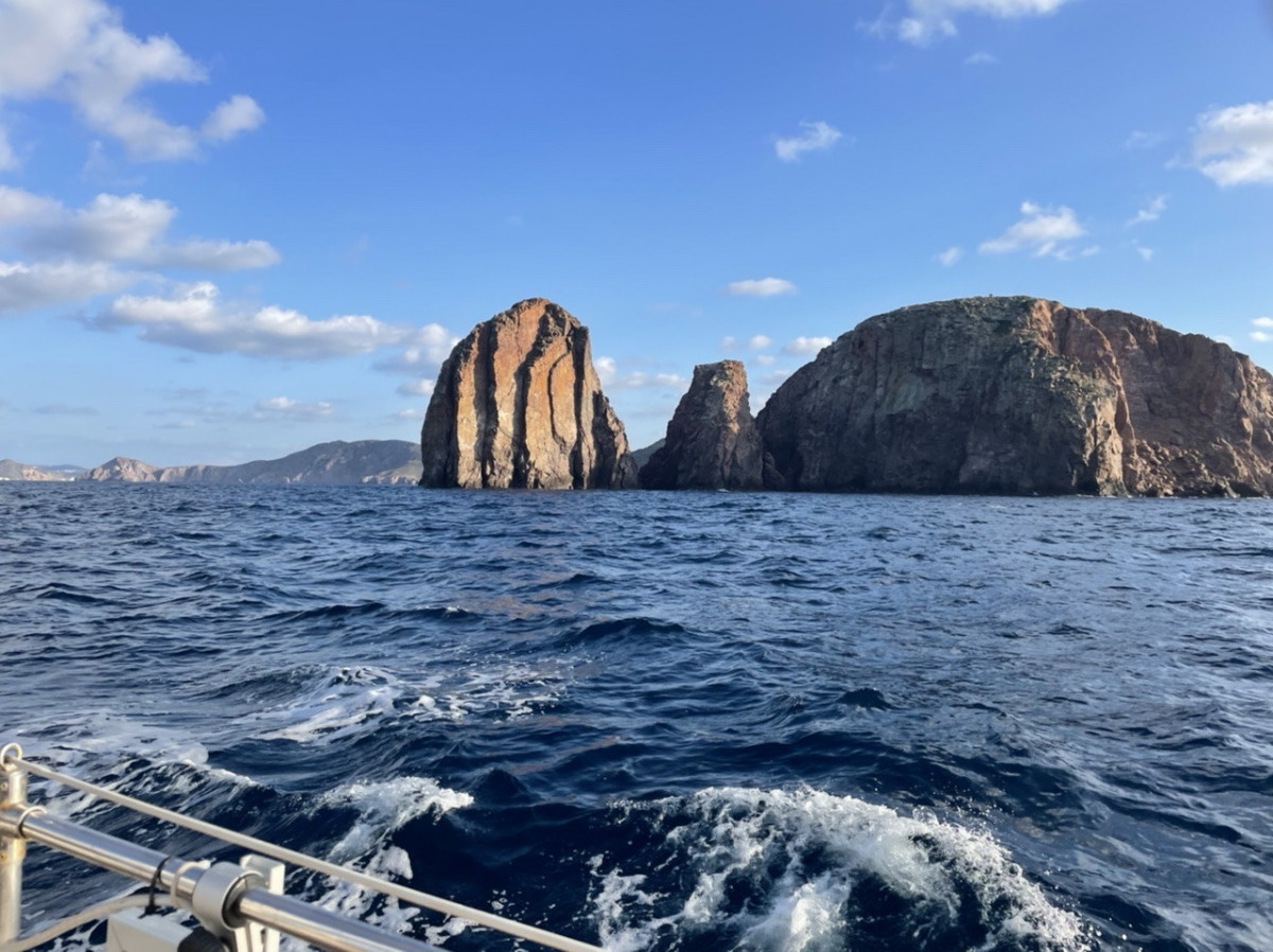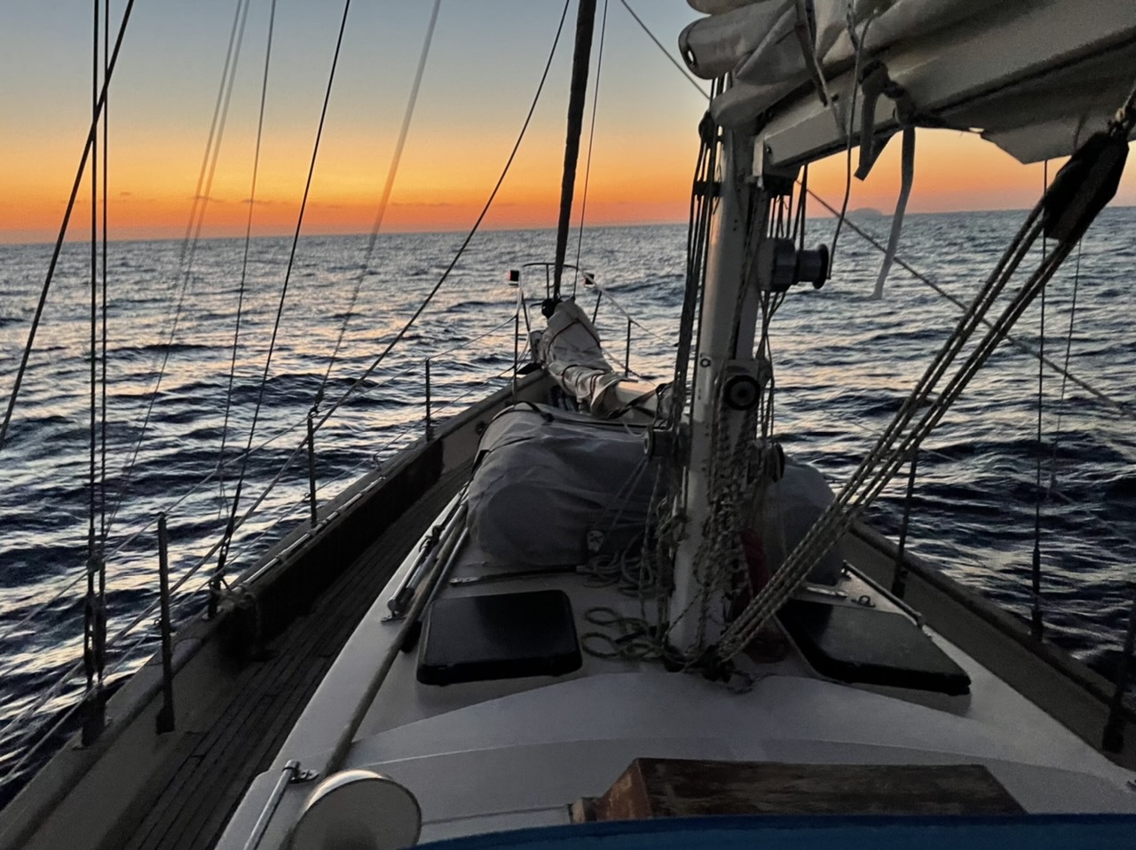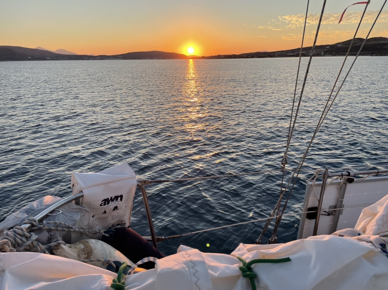 Wer sich im Jazz auskennt, weiß, dass “Midnight Voyage” ein Jazz Song von Michael Brecker ist. Wir finden immer wieder Bezüge zwischen dem Segeln und der Musik, die wir machen. “Midnight Voyage” hat Walters Band “Jazz Pastry” (Link) in einer eigenen Version ihrer Sängererin als ” Nachts unterwegs” im Repertoire. Das passt zu unserer Fahrt von der Insel Milos zurück zum Peloponnes.