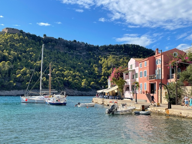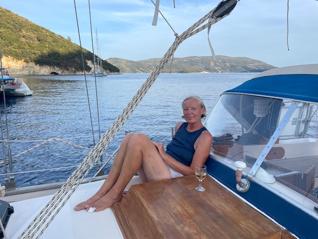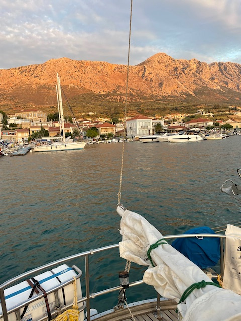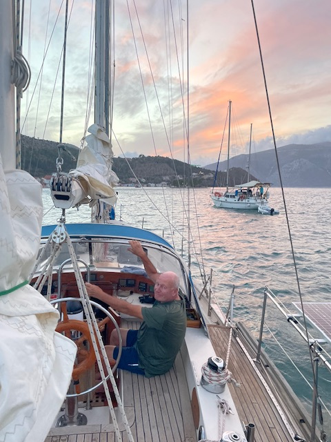 Am nächsten Tag, auf dem Weg nach Korfu, 13 Meilen in das wunderschöne, uns längst bekannte Sivota auf dem Festland, wieder bei unglaublich heftiger Dünung, wieder zu wenig Wind, wieder Geigenkurs, wieder flog man unter Deck hin und her …dann endlich Ruhe und Sonne im Hafen, Petros nahm uns in Empfang, alles gut.