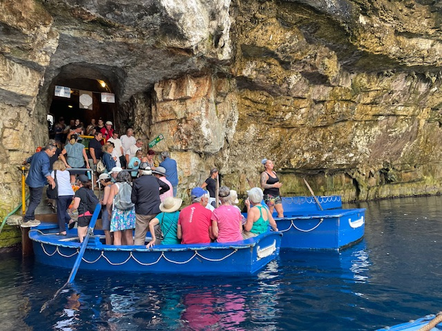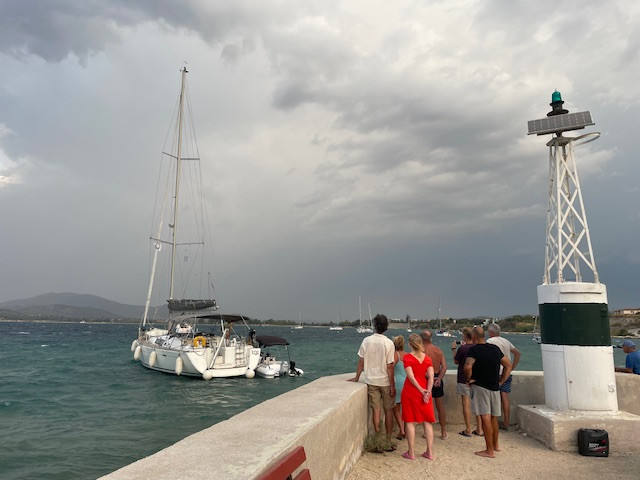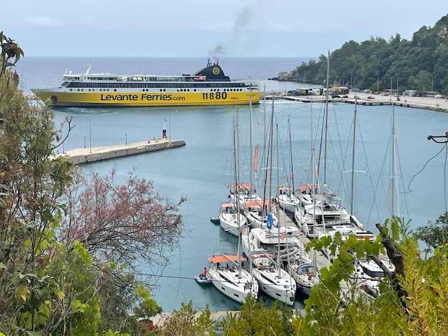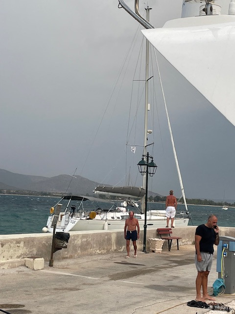 Am nächsten Tag ging es aus der Bucht von Preveza Richtung Paxos. Graues Wetter, Wind von vorne, heftige Dünung, heftiges Gegeige, so nennt man diesen Achterbahn-Kurs. Nicht schön! In Gaios auf Paxos – dem St. Tropez des ionischen Meeres! - legten wir an dem schon bekannten Schwimmsteg mit den grauenhaften Mooring-Leinen an, aber neben zwei unglaublich witzigen Briten, neben denen wir schon in Preveza lagen – ein wenig Monty Python, schön. Abends haben wir uns dann ein leckeres Essen in einem guten Fisch-Restaurant gegönnt, ausgezeichnet – das musste sein.
