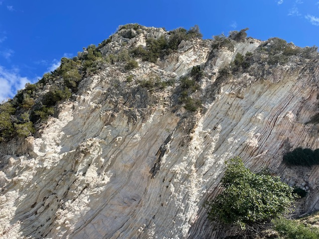 Dann mussten wir doch los – 10 Meilen nach Westen um das Kap Doukatou herum, dann 25 Meilen nach Norden an der spektakulären Westküste von Lefkas mit den weißen senkrechten Felswänden entlang. Hier waren wir im Frühsommer schon einmal von Nord nach Süd unterwegs und haben eine Nacht vor Anker verbracht. Kein Wind, aber ganz viel Dünung. Achterbahn mit Motor … langes nerviges Schaukeln bis Preveza. Dort angekommen, war es wieder trübe und regnerisch, wir ankerten in der großen Bucht hinter der Stadt, vor uns der Ambrakische Golf. Bis wir dann unserem irischen Nachbarn zu nahe kamen – der Anker rutschte. Also bei Nieselregen und heftigem Wind einen neuen Ankerplatz gesucht und nach zwei Versuchen saß der Anker – für einen Tag und eine Nacht voller Gewitter, Regen und Starkwind. Immerhin – Ouzo, Wein und ein gutes Essen aus der Bordküche waren noch vorhanden.