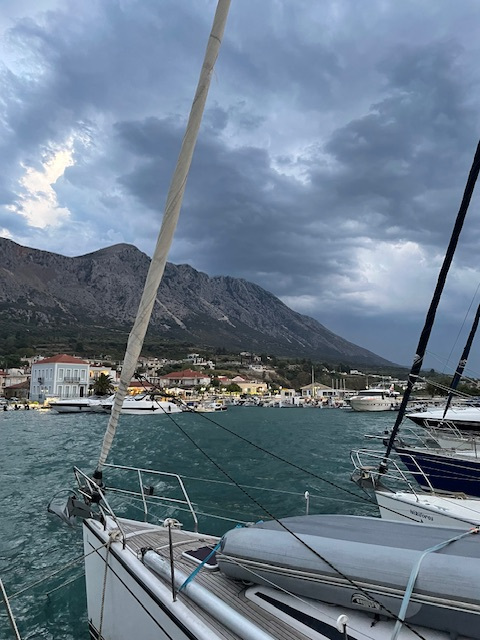 Aber der Wind war so heftig, dass wir drei Tage dort blieben, auch weil in Sivota im Süden von Lefkas kein Platz an irgendeiner der vielen Piers frei war – alles wartete den Wind ab, um dann nach Norden zu kommen.