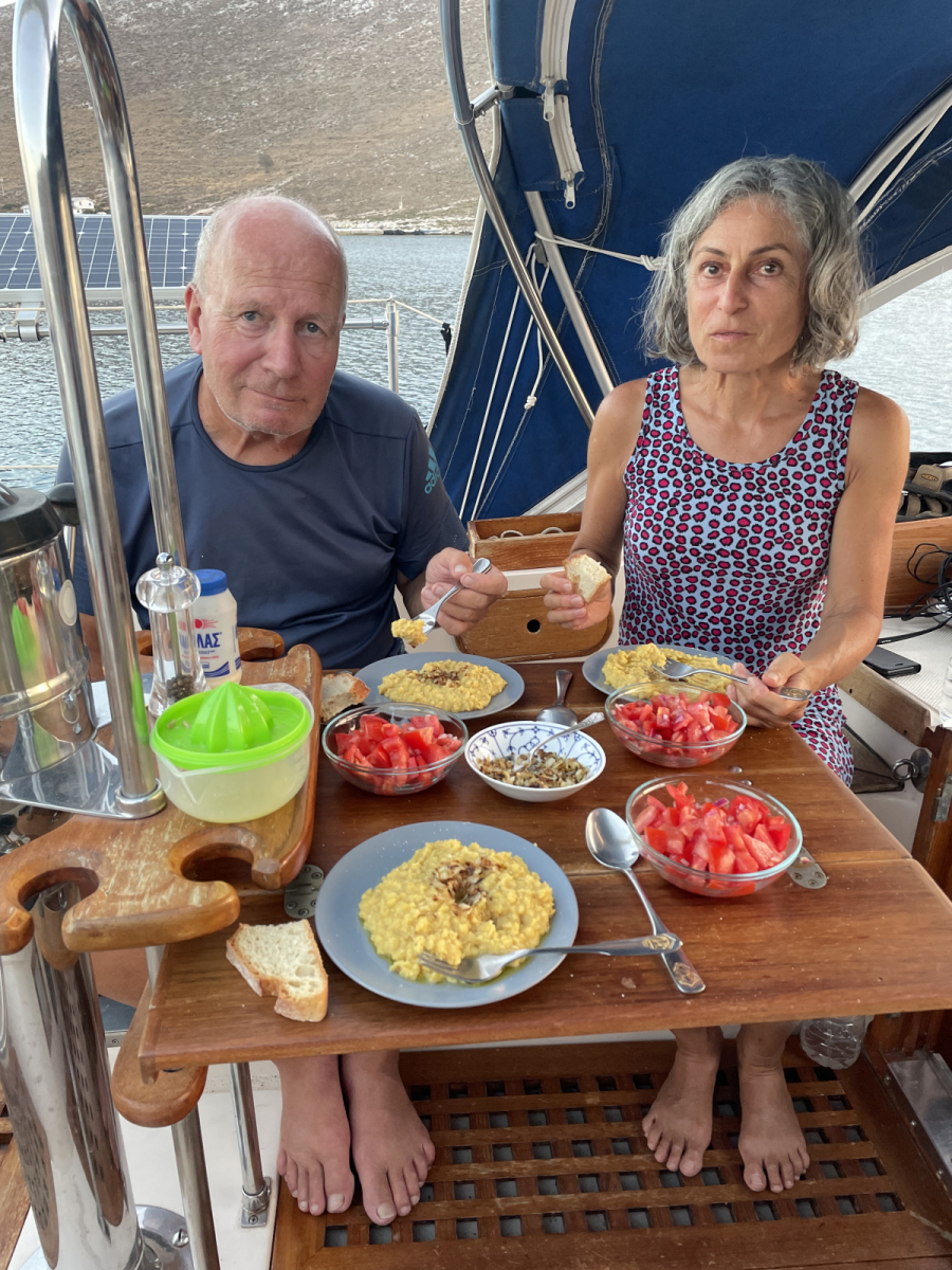 Kardamena has a decisive advantage, which is another reason why we liked it here: You pay neither mooring fees nor water nor electricity - everything is free. It was easy for us to put up with the fact that all the big screens in the bars and kafenions were showing the celebrations for Queen Elizabeth's funeral for a whole day.